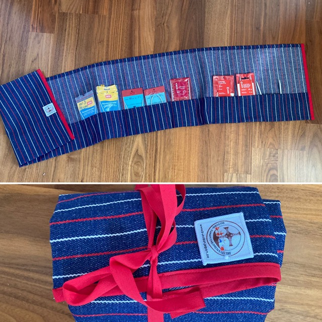 Plötsligt när jag stiger av färjan, ser jag framför mig en man, som jag inte känner. I hans hand ser jag däremot något, jag genast känner igen. Han bär på en av de kassar, jag sytt till förmån för Bukobahjälpen. Kanske någon köpt den vid något av våra försäljningstillfällen och gett honom den som present. Jag vet inte, men jag blir glad!